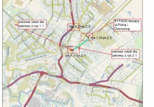 - Zamknięcie odcinka od skrzyżowania z działką nr 350/2 do tymczasowego BYPAS-u łączącego ul. Polną z ul. Dworcową.